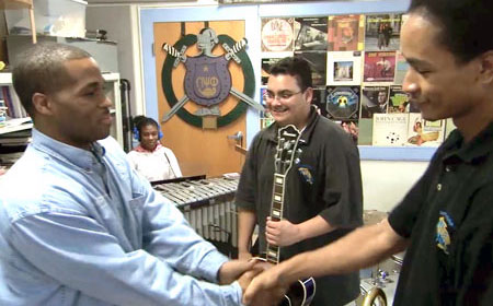 Still, Dickerson knows that he only has a few years to make an impact on his students. In order to truly make a difference, he believes the best bet is to get them while they're young and keep an eye on them throughout the years to make sure they graduate from high school. Along with his brother Nasir, who teaches middle school music, and his friend Hassan Sabree, who teaches music at the elementary school, Dickerson uses a formula that they like to call "vertical alignment" or "vertical articulation." The idea is simple: One reports to the other about the child and his or her progress and the child advances through the education system. Not only does this method keep teachers informed on a child's development and family history, it also helps the child know that every school will have at least one teacher who cares for him or her. "More than us being teachers, we're being coaches in that we're finding opportunities possible to provide mentoring," Dickerson said. "We're taking them from the concept to the careers."