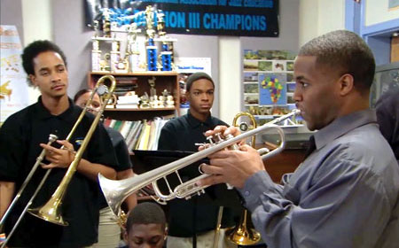 There's a constant ringing in Jamal Dickerson's (NJ '07) ears and he wouldn't have it any other way. As the instrumental teacher and band director for Creative Arts High School, it's his job to mentor and educate teens from the struggling city of Camden, N.J. on the wonders of music, specifically jazz. While this is also Dickerson's favorite music genre (he's played the trumpet since second grade and studied with musicians like Leon Mitchell and Colin Knight, Cab Calloway's original trumpeter), he's found that it's the easiest one to teach given his resources. "In the school we were stuck with jazz instruments," he says, so he decided to use what he had. "[Plus,] my students don't study privately and it's tougher to start an orchestra if you don't have students who study privately because they need individual personalized training." The program is about showing students the world, both literally and metaphorically. Each year, Dickerson — or Mr. D, as his students call him — takes his high schoolers to music competitions across the country and opens their minds to career options beyond what they see in Camden, a town so deserted economically that it doesn't even have a shopping mall or a movie theater. He shows them that there is another way out besides the option most often suggested: sports.
