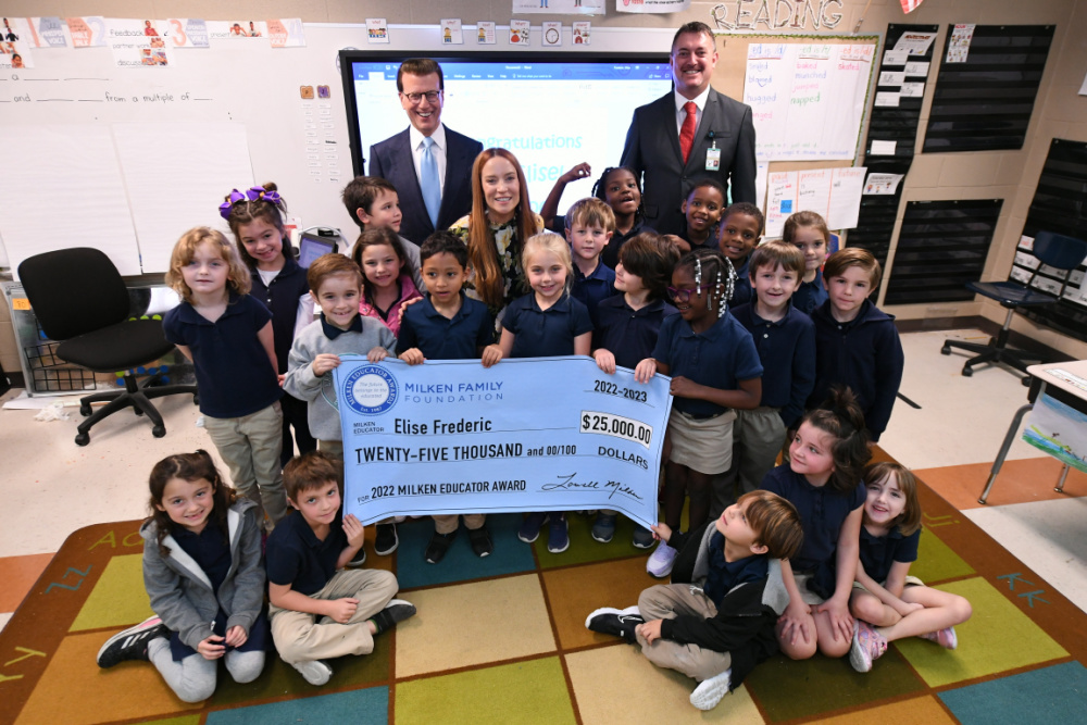 Elise Tureau Frederic (LA ’22) was “underprepared and overwhelmed” during her first year in the classroom. Her school leaders and coworkers got her through it: “I am so thankful they saw potential in me.” Lowell Milken named her a Milken Educator at Lakeside Primary in Ascension Public Schools on January 24, 2023.