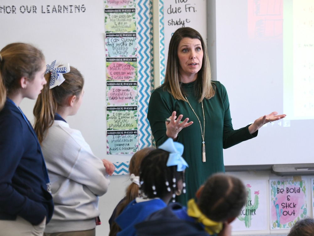 Stephanie: After graduation [from college], I was hired as a news reporter at a local station in Lafayette. Then I pursued a career outside of news by becoming a marketing and public relations director for a law firm in Baton Rouge. I enjoyed the work, but something was missing. I wanted to truly make a difference with my work and know that at the end of the day I had helped people. I loved the idea of becoming a teacher, building relationships with students, and hopefully leaving a lasting impression in their lives. Like many educators, I entered the field of education to try to make a difference every day. Even though the days can be long and sometimes challenging, it is one of the most rewarding professions there is. I love helping my students learn—not only math and science, but leadership and life skills.