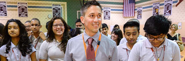 We talk a lot about how the Milken Educator Award changes lives. This week, it was science teacher Robert O’Donnell Jr.’s turn to be “discovered.” With eight veteran educators in attendance at Christa McAuliffe School–PS 28 in Jersey City, Robert was announced by Dr. Jane Foley as our 2013 recipient for New Jersey.