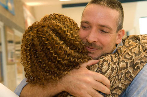 Michael Galbraith (PA '07) gets a congratulatory hug after being surprised with a $25,000 Milken Educator Award.