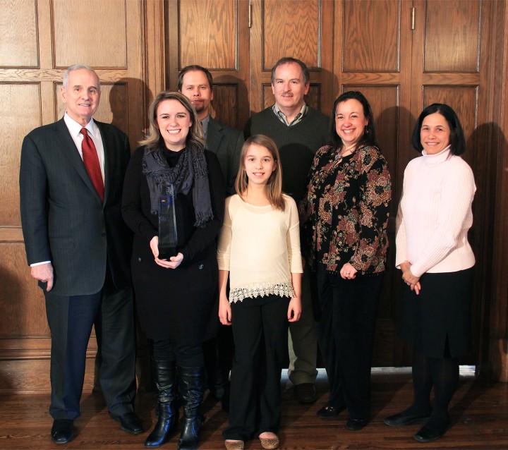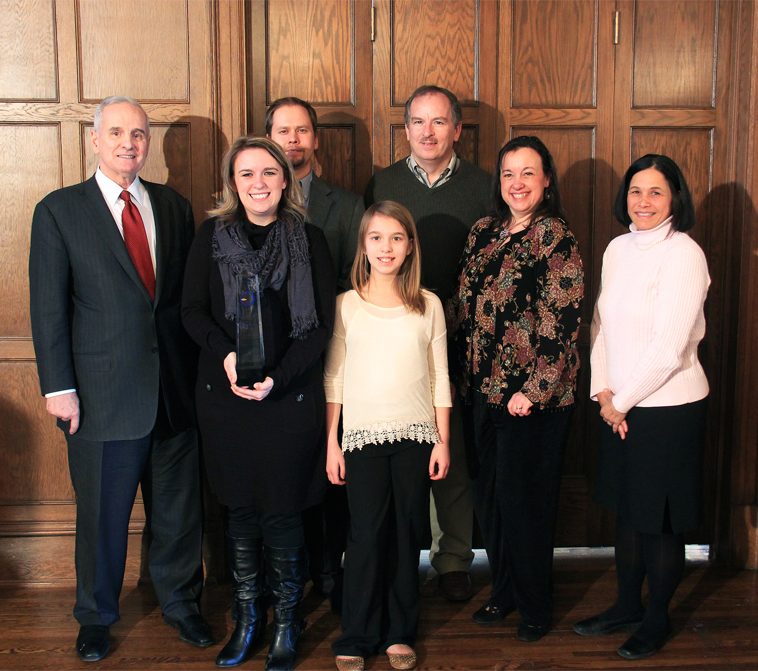 Nationwide | 2014–15Elementary school teacher Angela Harvala (MN '14) poses with Minnesota dignitaries and her family at an event celebrating her Milken Educator Award win at the governor’s mansion in St. Paul, Minnesota on Feb 5, 2015.