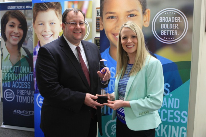 Nationwide | May 01, 2016Courtney Matulka (NE '15) receives her Milken Educator Award obelisk from Nebraska Commissioner of Education Dr. Matthew L. Blomstedt at a ceremony honoring her 2015-16 Award. Matulka, known for her creativity in engaging her students in science, received her Milken Educator Award at Beadle Middle School in Omaha on October 21, 2015. See the photos and watch the video from her exciting surprise notification.