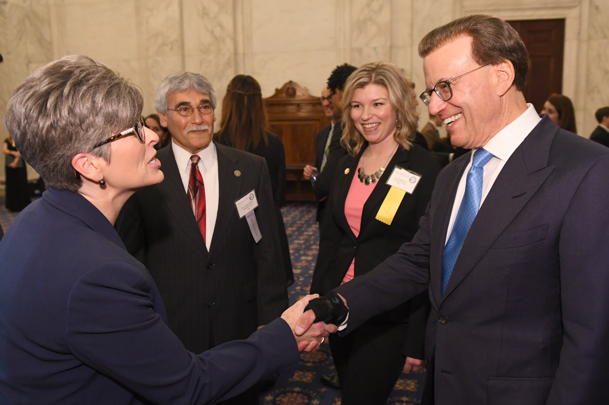 Kennedy Caucus Room | Washington, DC | Mar 21, 2018Iowa Milken Educators Joni Readout (IA '17) and Dr. Hector Ibarra (IA '93), along with Milken Family Foundation Chairman and Co-Founder Lowell Milken (right), discuss important issues in education with U.S. Senator Joni Ernst at the 2018 Milken Educator Awards Forum in Washington, D.C.