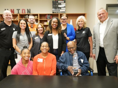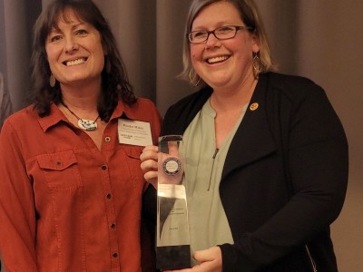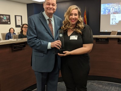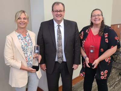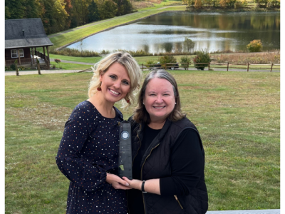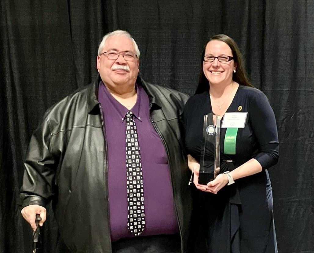 Jun 01, 2022Megan Morgan (KS '21), pictured here with veteran Milken Educator Jim Armendariz (KS '04), is recognized with her Milken Educator Award obelisk at the KEEN (Kansas Exemplary Educators Network) conference.