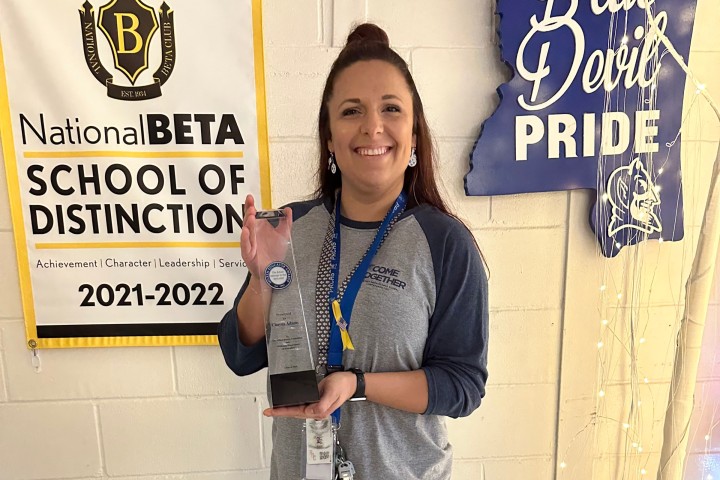 Jun 01, 2022Chayna Adams (MS '21) receives her Milken Award obelisk at Pearl River Central High School in Carriere.
