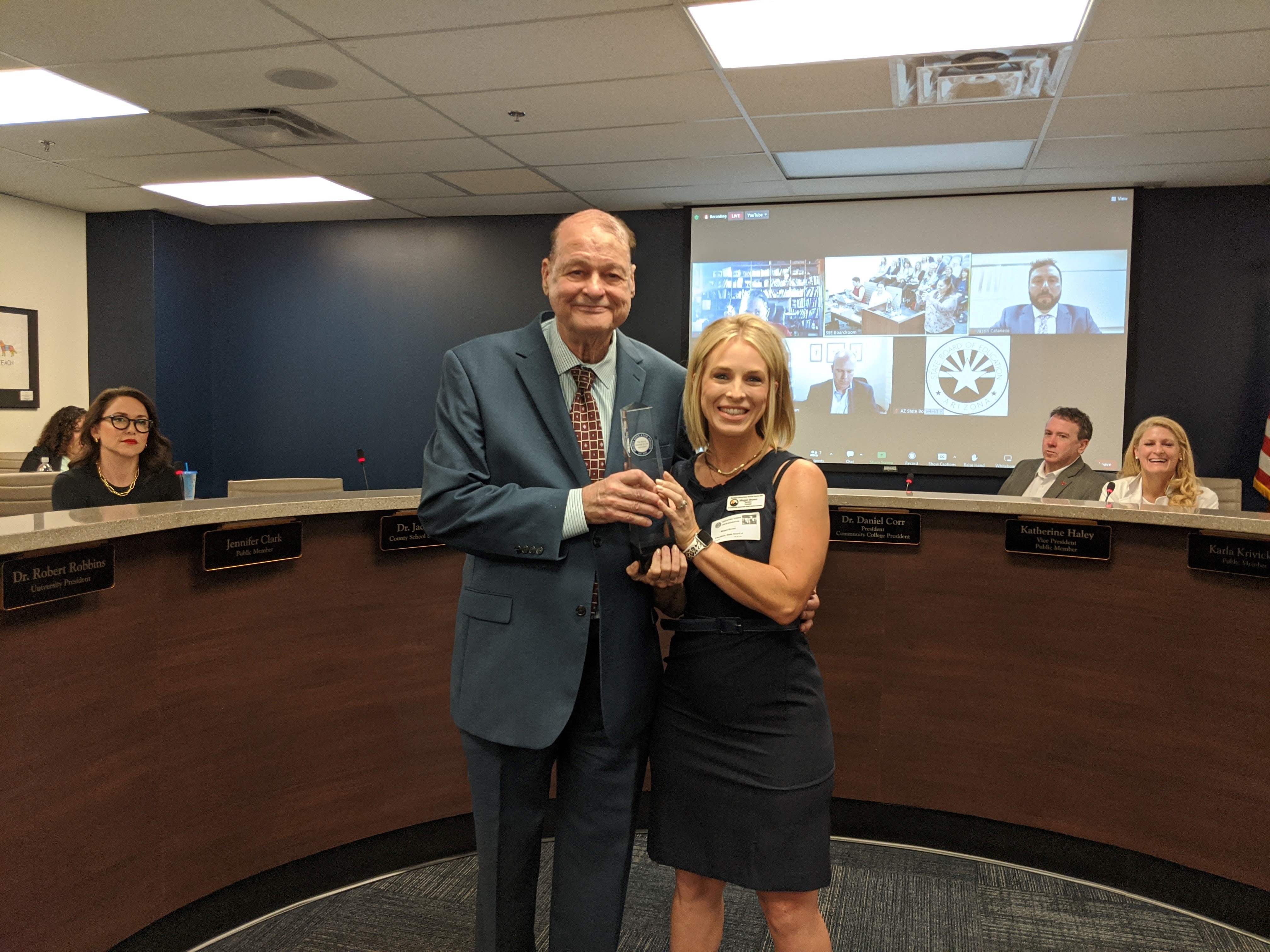 Apr 13, 2023Megan Brown (AZ '22) receives her Milken Educator Award obelisk at the Arizona State Capitol with Arizona Superintendent of Public Instruction Tom Horne.