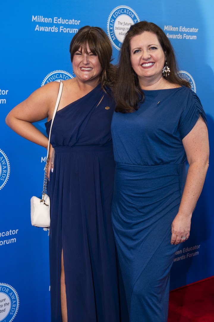 UCLA Luskin Conference Center | Los Angeles, CA | Apr 21, 2023Veteran Milken Educators Hailey Couch (OK '18) and Heather Hurt (AL '18) stop for photos on the red carpet.