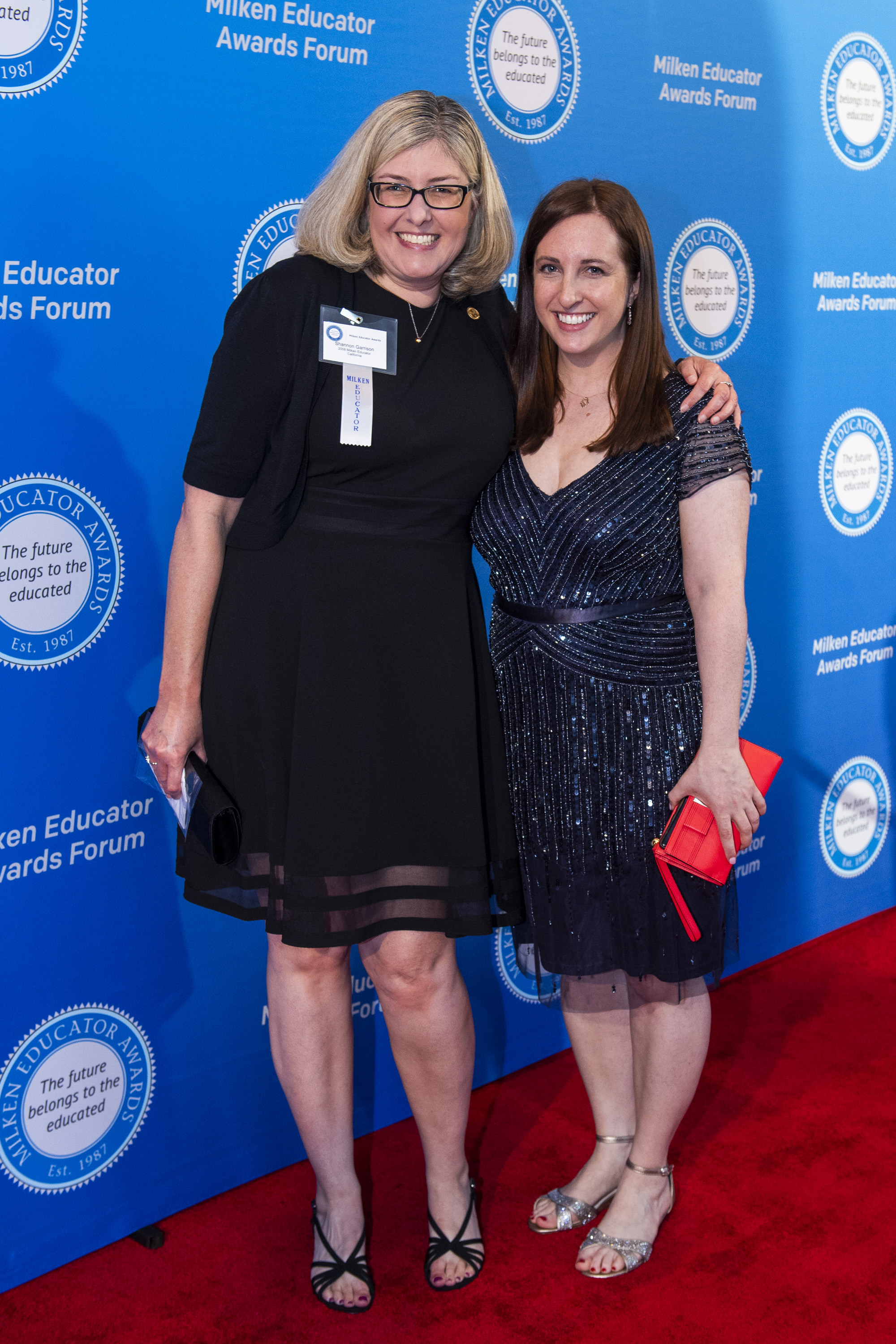 In this photo: Sarah Collins (ME '22) , Shannon Garrison (CA '08)All photos should be credited to "Milken Family Foundation" unless otherwise noted.