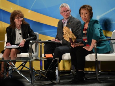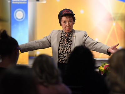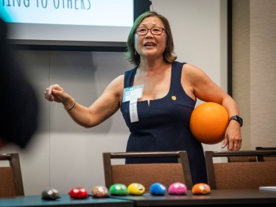 UCLA Luskin Conference Center | Los Angeles, CA | Apr 20, 2023Dr. Dilhani Uswatte (AL '09) holds Mike Milken's new book, "Faster Cures: Accelerating the Future of Health," which all Forum attendees received.
