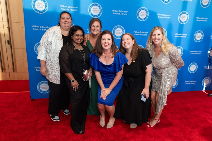 In this photo: Dr. Angie Besendorfer (MO '96) , Hailey Couch (OK '18) , Heather Hurt (AL '18) , Meghan LeFevers (NC '17) , Leslie Sullivan (SC '19) , Dr. Dilhani Uswatte (AL '09)All photos should be credited to "Milken Family Foundation" unless otherwise noted.