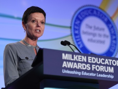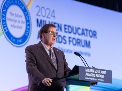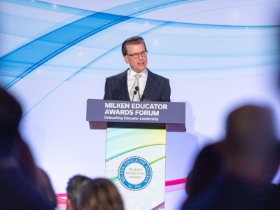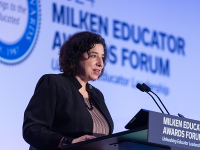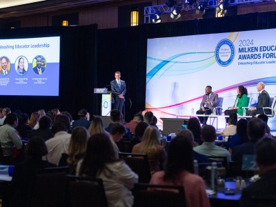 In this photo: Jennifer Hite (MS '23) , Michael Sana (HI '15)All photos should be credited to "Milken Family Foundation" unless otherwise noted.