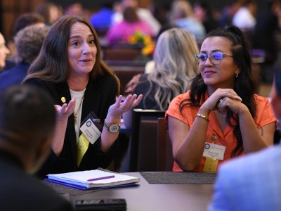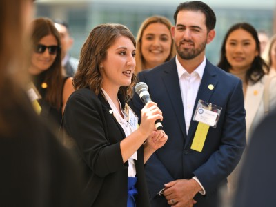 UCLA Luskin Conference Center | Los Angeles, CA | Jun 06, 2024Jennifer Hite (MS '23) introduces Mike Sana (HI '15) to the group.