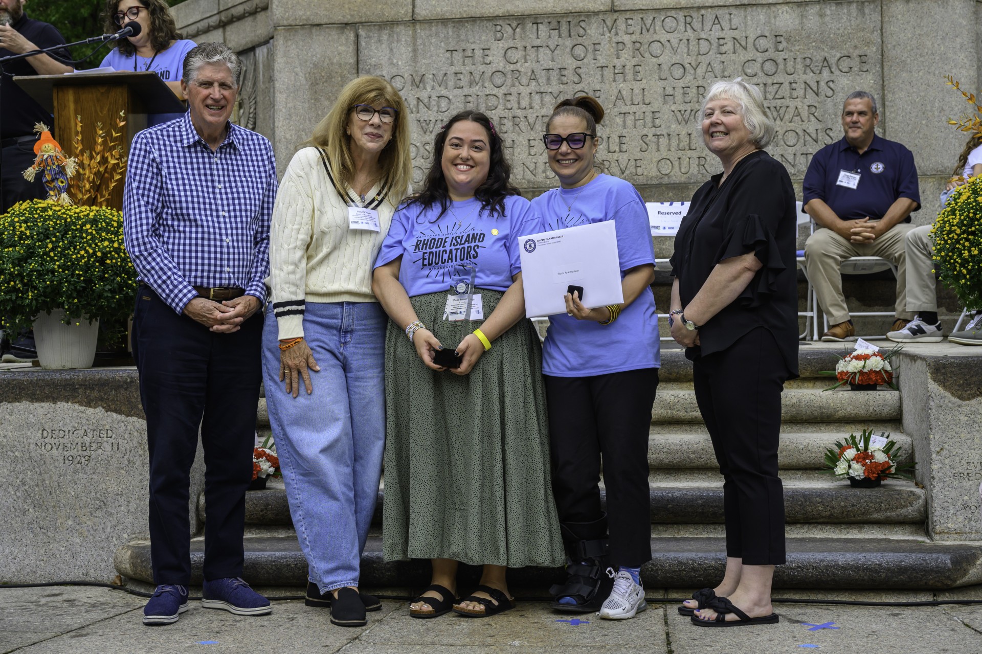 From left: Rhode Island Governor Daniel McKee, Chair of the Board of Elementary and Secondary Education Patricia DiCenso, Maria Santonastaso (RI '24), Rhode Island Commissioner Angélica Infante-Green, and Rhode Island Senate President Valarie Lawson.