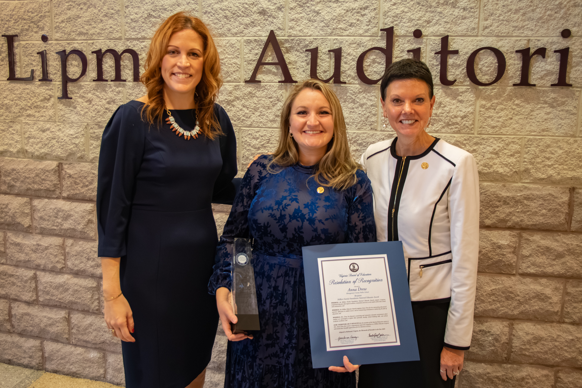 From left: Virginia Superintendent of Public Instruction Emily Anne Gullickson, Anna Drew (VA '24), Stephanie Bishop (VA '01).