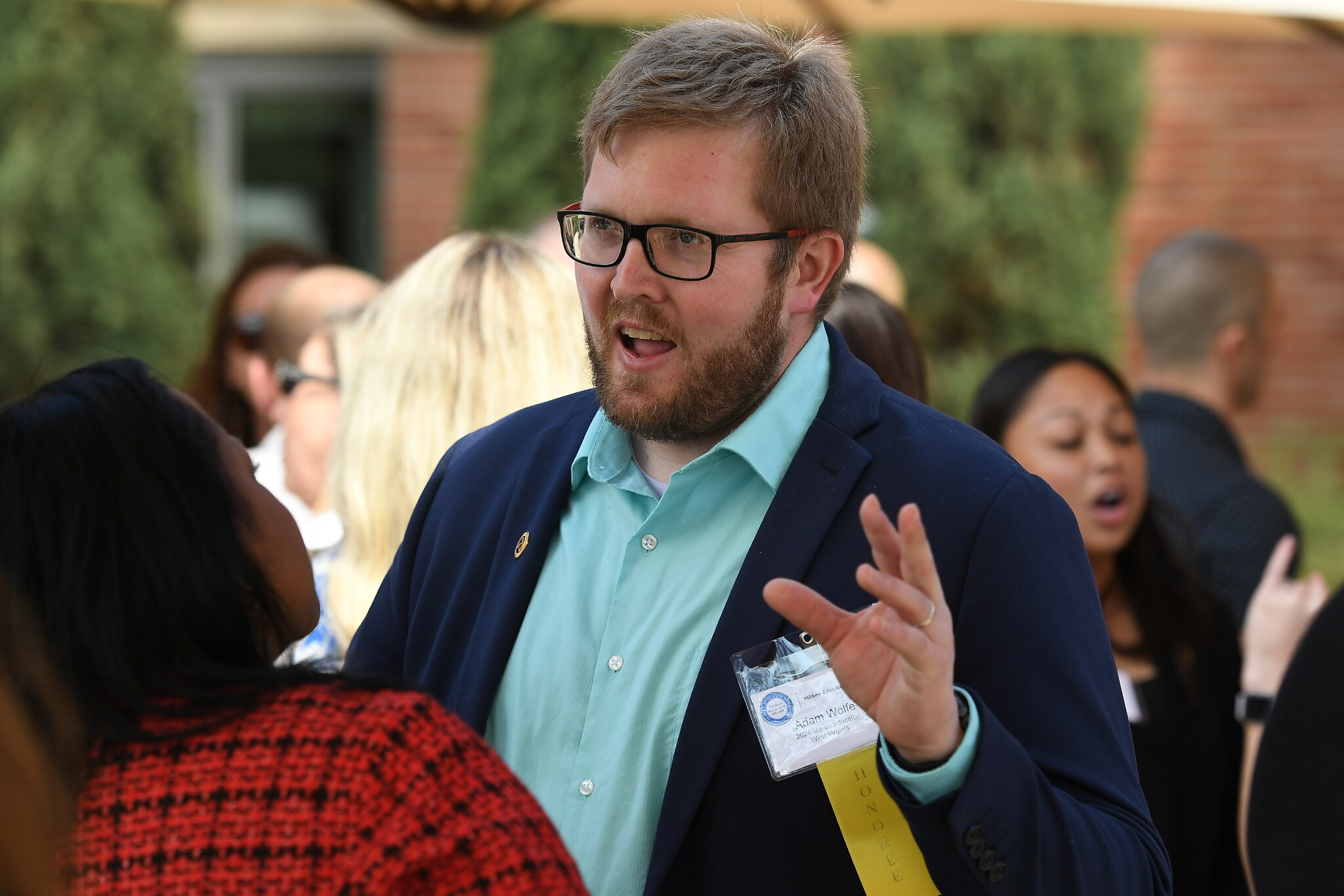 In this photo: Dr. Natasha Cooke-Nieves (NY '10) , Adam Wolfe (WV '24)All photos should be credited to "Milken Family Foundation" unless otherwise noted.