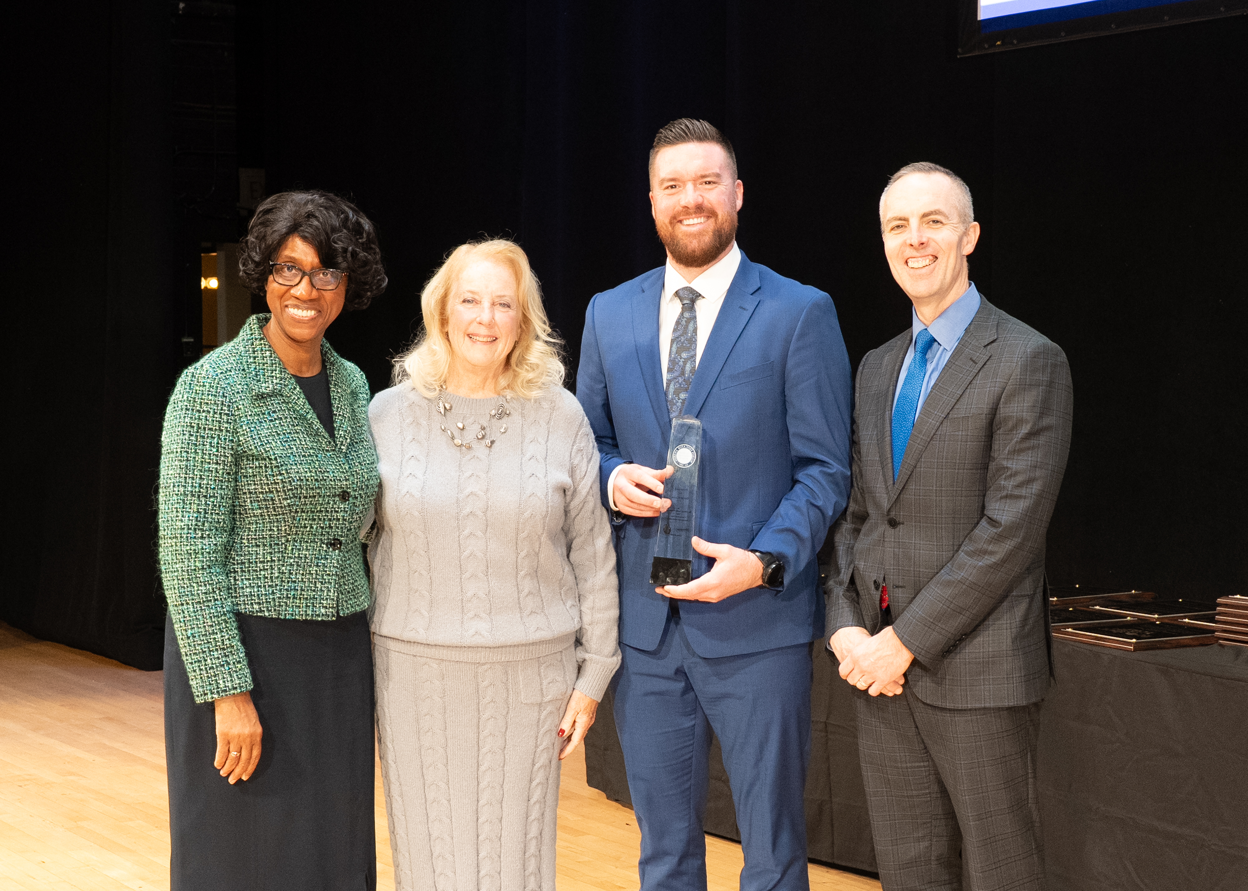 David Mason (CT '25) is presented with his Milken Educator Award obelisk at the Connecticut Teacher of the Year Annual Ceremony on December 16, 2025.