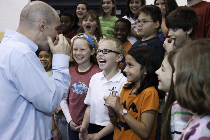 Stone Academy of Communication Arts | Greenville, South Carolina | Nov 01, 2010Milken Educator Award Recipient Gresham Brown shares a few celebratory moments with a group of his second-grade students following his Award Notification.
