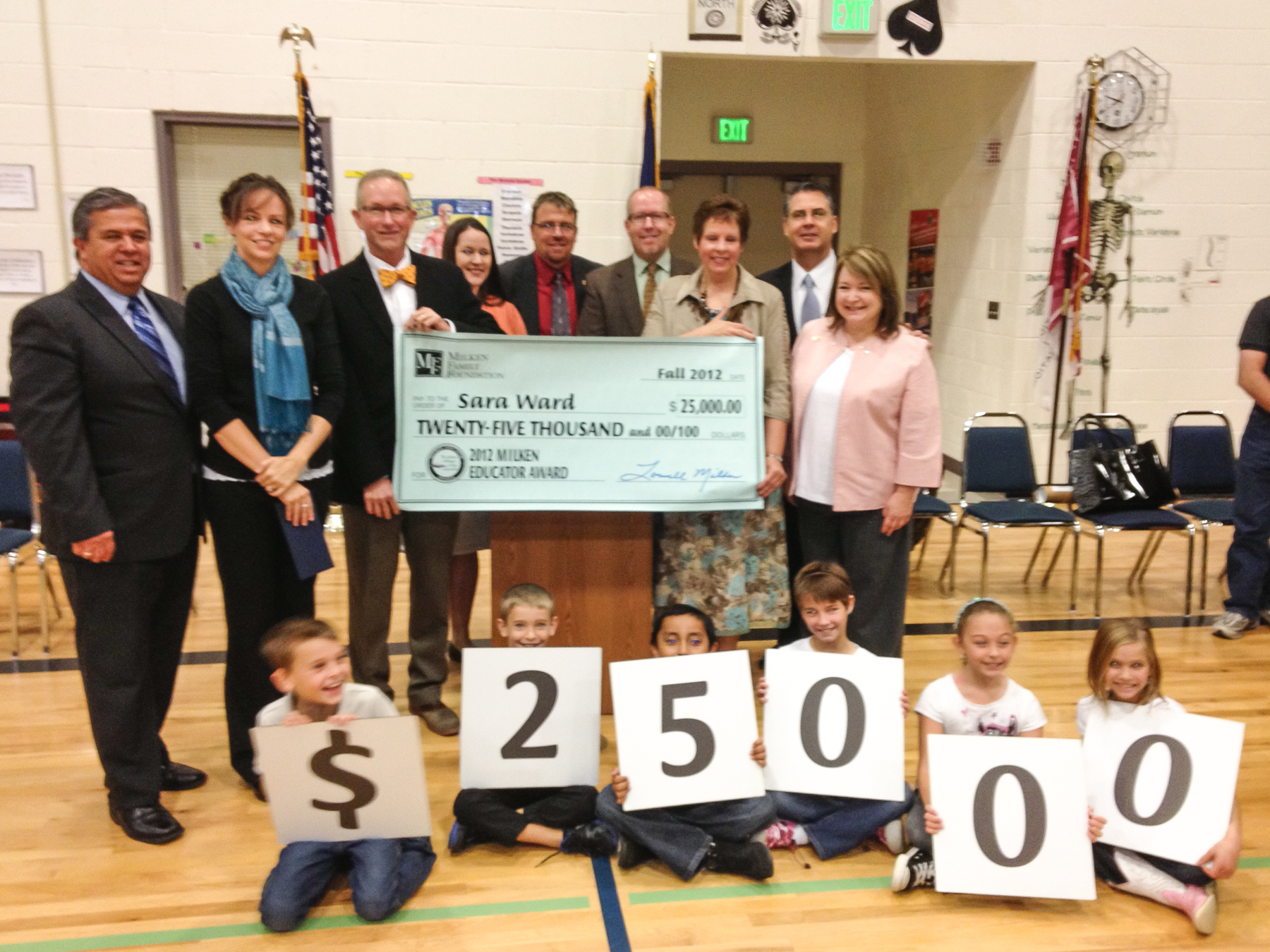 Lakevue Elementary School | Nampa, ID | Oct 22, 2012Education officials and fellow recipients add their support to newest Milken Educator Sara Ward as some happy students help with the math.