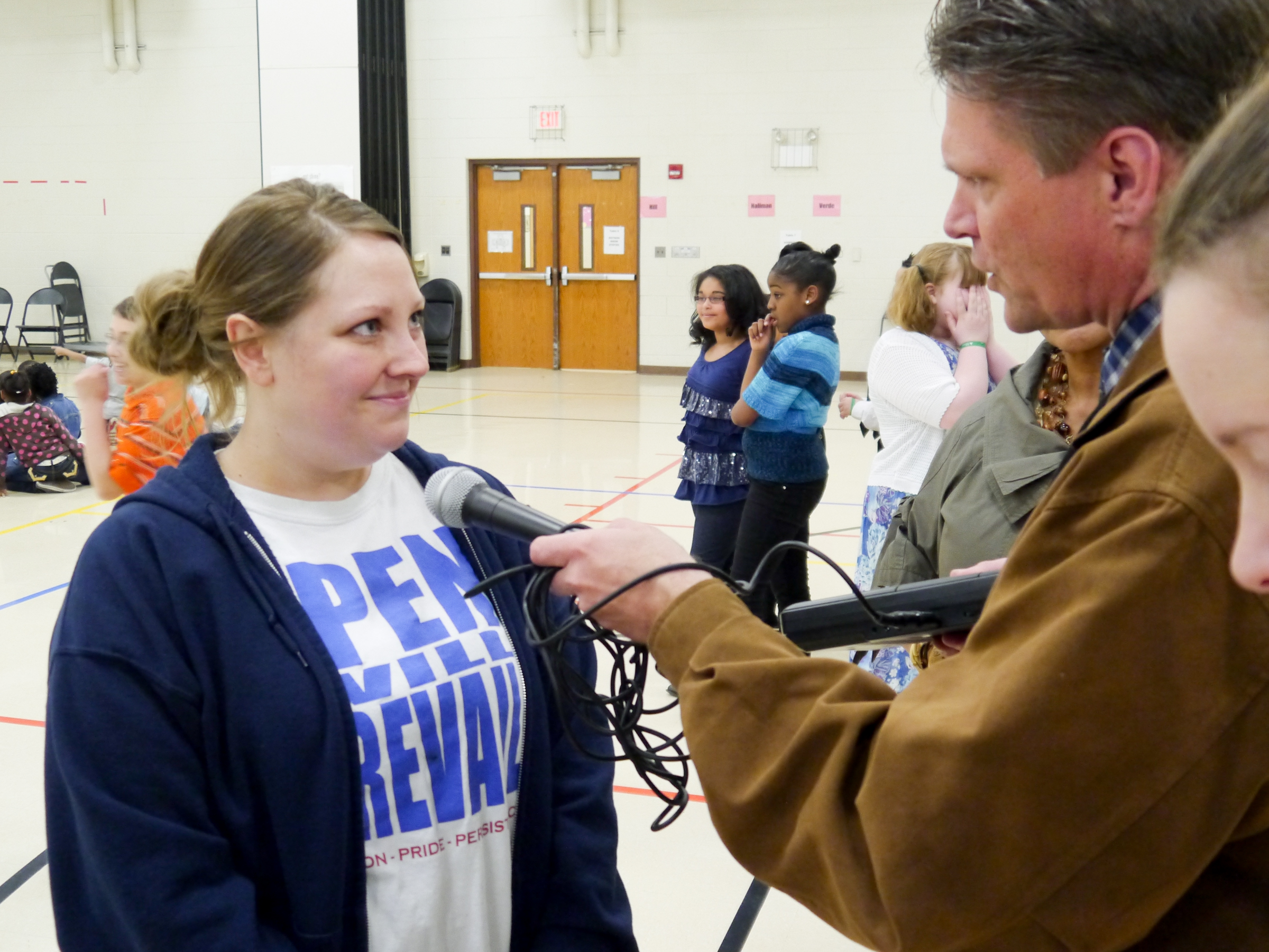 Lynne Thigpen Elementary | Joliet, IL | April 12, 2013Stephanie Hawkins (IL '12) gives an interview to reporters. Thanks to media coverage, she'll be able to revisit this incredible day as often as she likes, even as the story reaches and inspires more current and future educators.