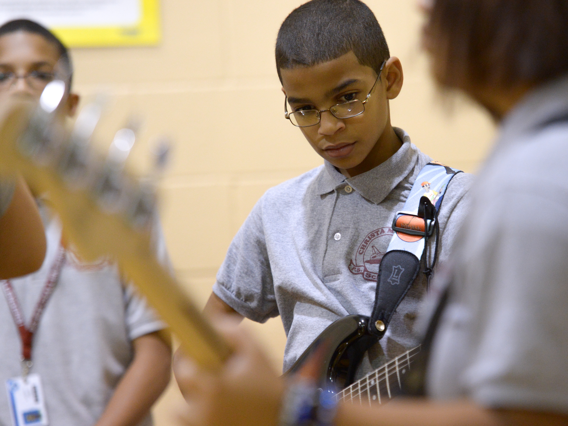 Christa McAuliffe School–PS 28 | Jersey City, NJ | October 9, 2013The student band at Christa MacAuliffe School warms up the room as the special assembly is getting underway. They may be used to playing for the entire school but even the VIPs and media in attendance don’t break these musicians’ rhythm.