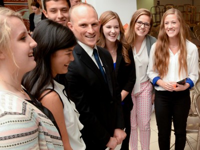Joplin High School | Joplin, MO | October 17, 2013The Milken Educator Award elevates the teaching profession by rewarding great educators, but no teacher does it alone. Accepting his $25,000 Milken Educator Award, and the promise that comes with it, Tobin Schultz gets some help from a few distinguished VIPs who believe in his potential to do much more in the course of his career.