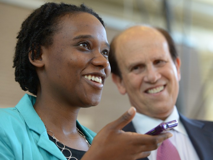 Thurgood Marshall Academy | Washington, DC | October 24, 2013Wanting to share the good news, Kena calls her mom with some help from Mike Milken. Of course, with so many media outlets there, Kena's mom may have already seen the entire event live on her TV!