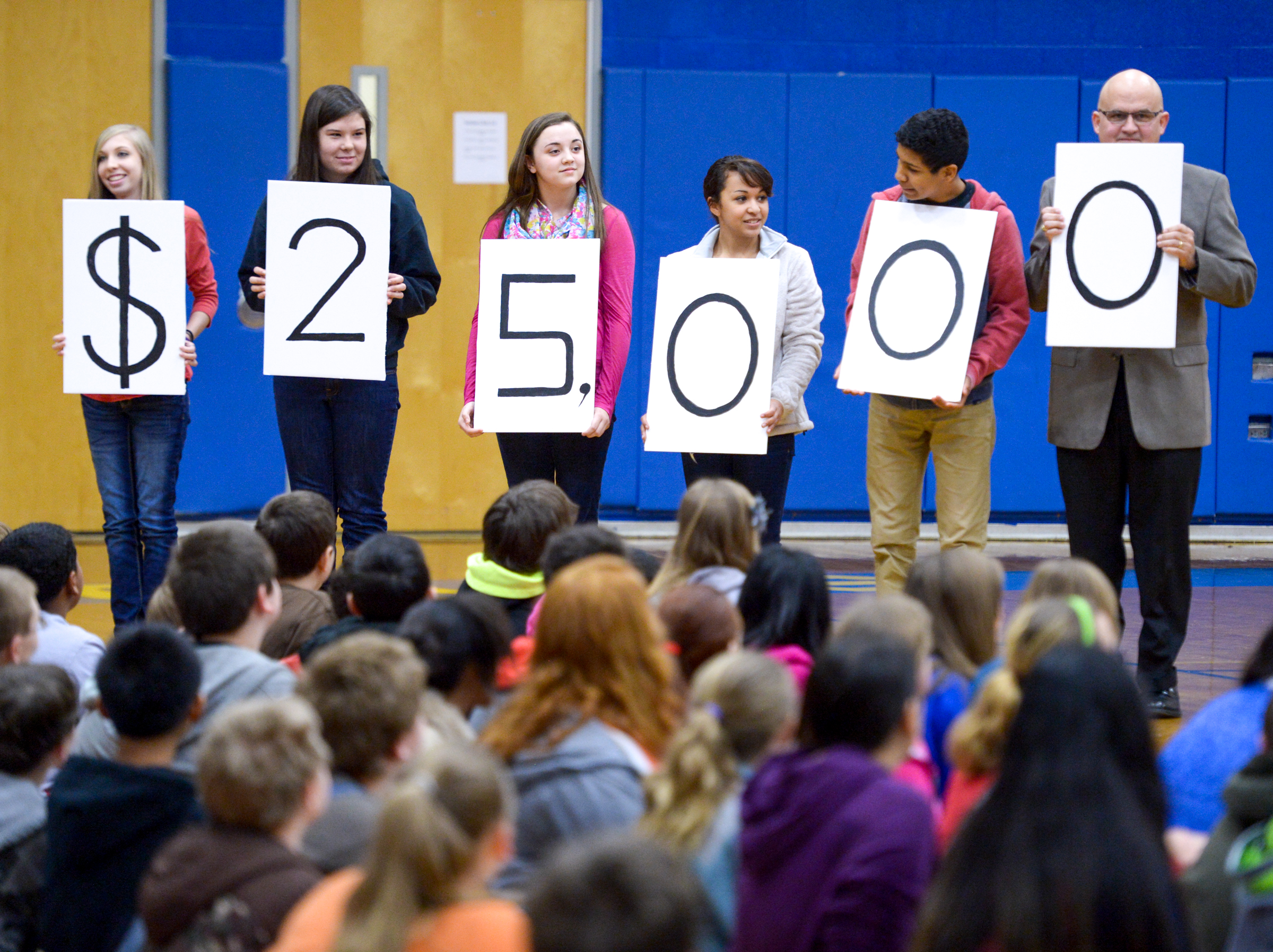 Athens City Middle School | Athens, TN | February 11, 2014Students often ask how studying math will help them in their lives. Here, a few volunteers—including Principal Mike Simmons—use numbers to illustrate the rewards of working hard and studying math. In fact, this $25,000 is about to go to a teacher who studied math at Athens City Middle School as a student not so long ago.