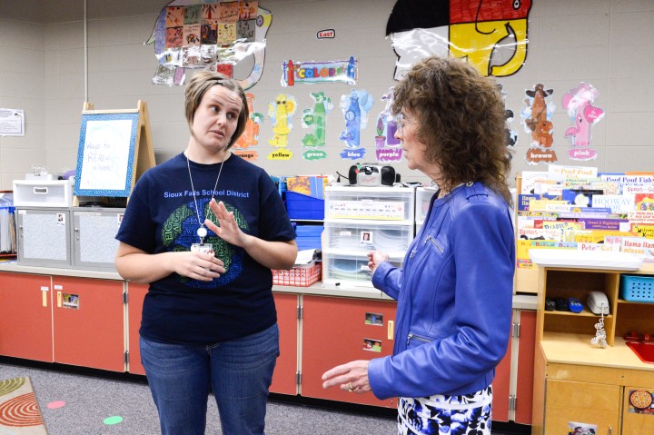 Hawthorne Elementary School | Sioux Falls, SD | Oct 24, 2014LeeAnna gives Dr. Jane Foley (IN ’94) a tour of her classroom, which is known for its positive and nurturing environment.