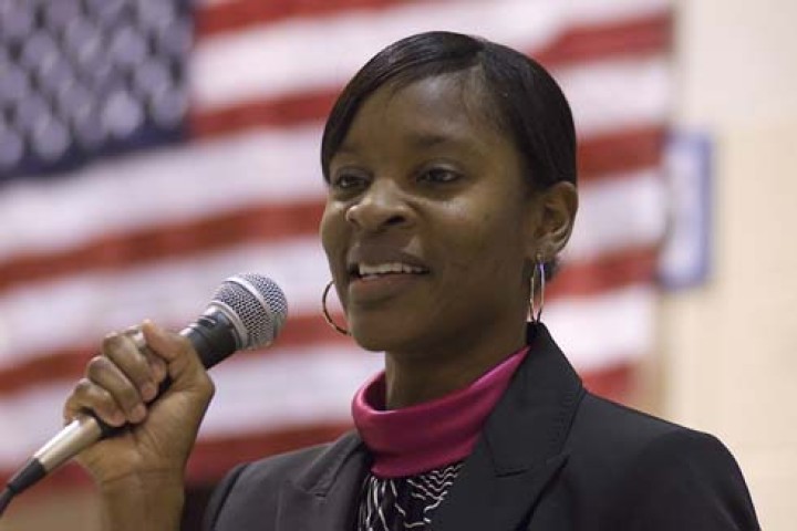 St. Paul, Minnesota | Oct 14, 2008Principal Adrian Pendelton welcomes students, staff and dignitaries to Galtier Magnet Elementary School.