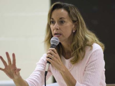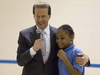 St. Paul, Minnesota | Oct 14, 2008Galtier Magnet Elementary students and Milken Family Foundation Trustee Joni Milken-Noah hold up cards displaying the amount of the Milken Educator Award.