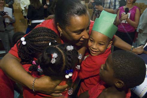New Orleans, Louisiana | Oct 16, 2008New Milken Educator Lynn Foy gets congratulatory hugs from her students after being surprised with a $25,000 Milken Educator Award.
