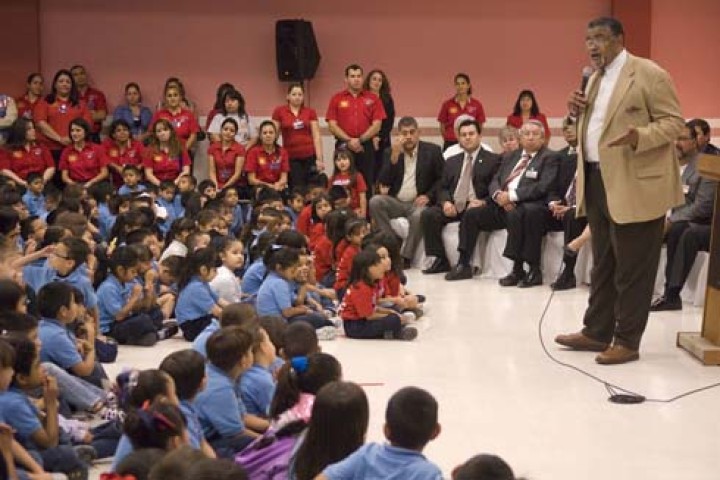 Alamo, Texas | Oct 17, 2008"It doesn't matter what color you are—if I say you're my brother, you're my brother," says Rosey Grier to the students at North Alamo Elementary School. "You respect your brother, you love your brother and you want the very best for your brother."