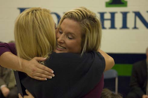 Blue Springs, Missouri | Nov 12, 2008A colleague gives Tiffany Morris a congratulatory hug for her $25,000 Milken Educator Award.