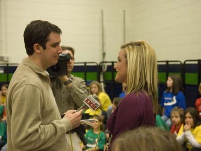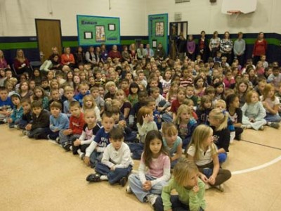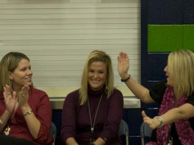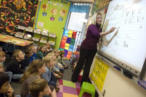 Blue Springs, Missouri | Nov 12, 2008New Milken Educator Tiffany Morris uses an interactive whiteboard to teach her students about the letter V.