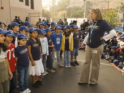 Los Angeles, California | Dec 04, 2008Fourth-grade teacher Shannon Garrison gathers her students for a schoolwide assembly, unaware that the purpose of the assembly is to surprise her with a $25,000 Milken Educator Award.