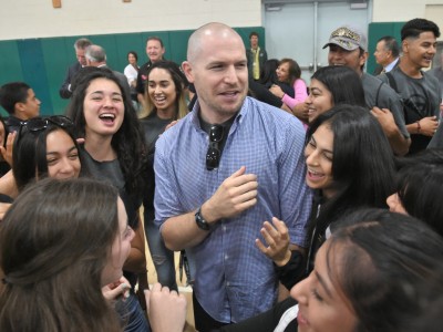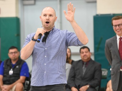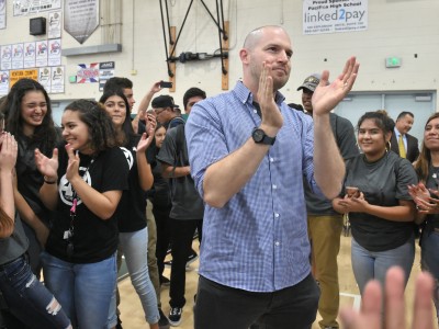 Pacifica High School | Oxnard, CA | Oct 12, 2017Oxnard Union High School District Superintendent Dr. Penelope DeLeon greets the crowd in the Pacifica High School gym. "Pacifica High School has the greatest potential and the best kids I’ve ever known," she says. "Your enthusiasm and your warmth spill over."