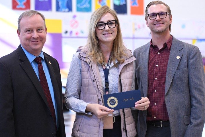 Camp Mohave Elementary School | Fort Mohave, AZ | Dec 08, 2023Veteran Milken Educators Bruce DuPlanty (AZ '99) and Bradley Breuer (AZ '10) welcome Aga Cook to the family.