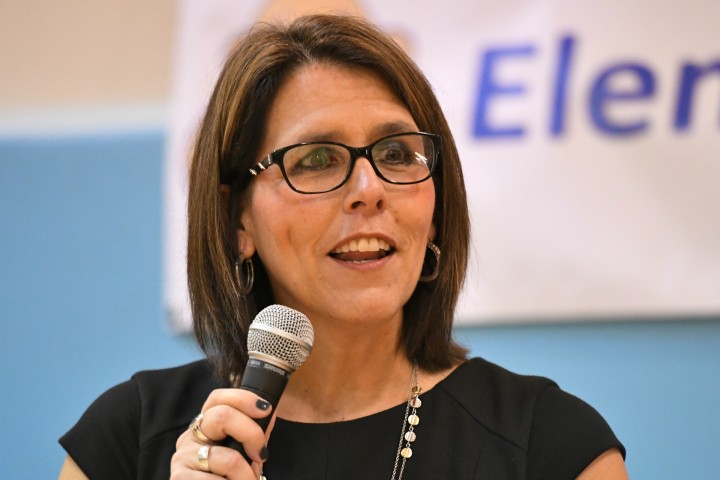 West Goshen Elementary | Goshen, IN | October 6, 2016West Goshen Elementary Principal Lori Line welcomes students, staff and guests to the morning assembly. West Goshen, a diverse, high-poverty K-5 campus, is working toward becoming an International Baccalaureate (IB) school.