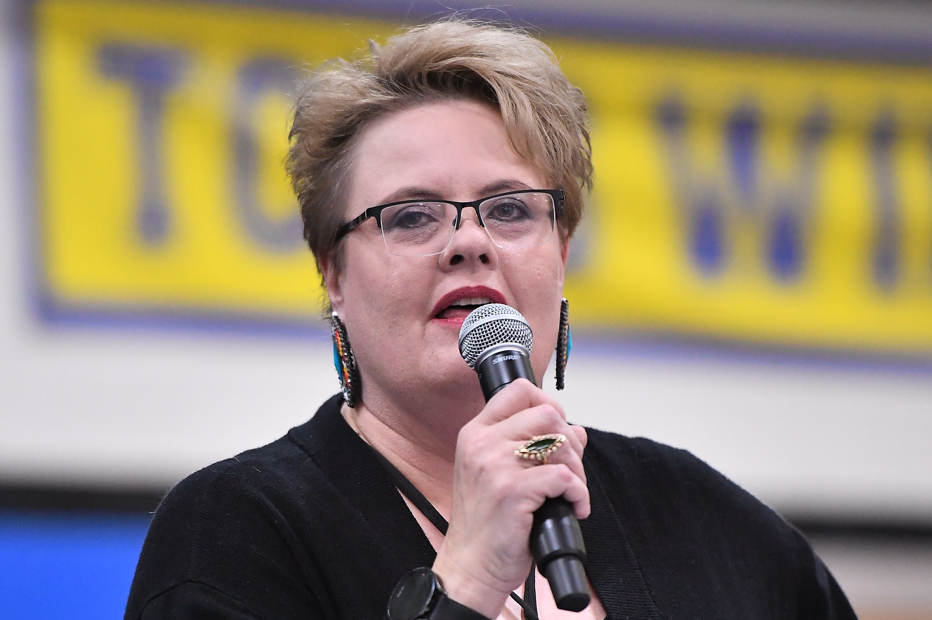 Todd County Middle School | Mission, SD | Dec 20, 2023Time to begin! Todd County Middle School Principal Dana Haukaas kicks off the morning assembly.