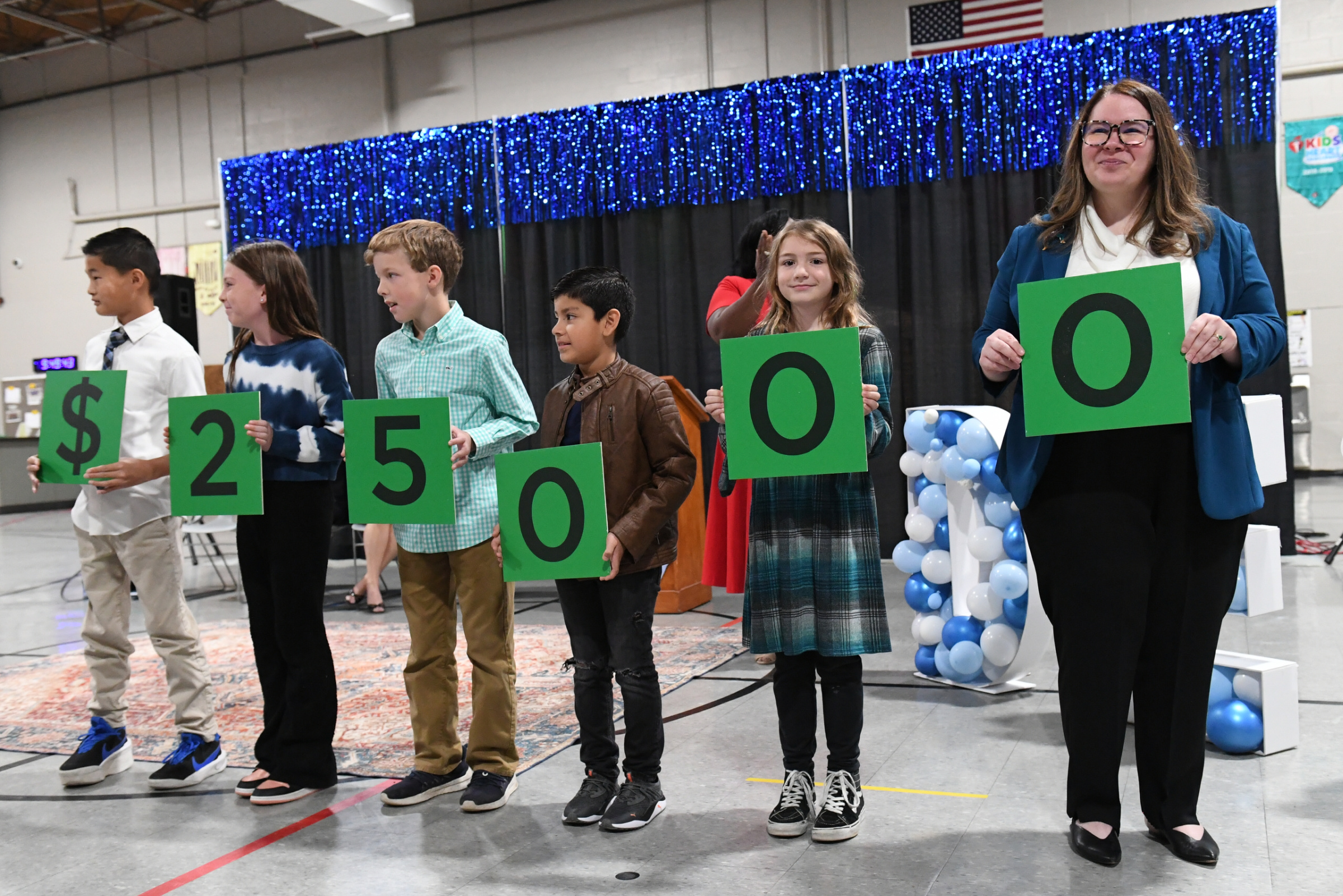 Dogwood Elementary | Germantown, TN | Nov 17, 2022The Milken Educator Award also includes a cash prize. How much? One digit at a time, students hold up cards that reveal the amount. When Tennessee Department of Education Assistant Commissioner of Human Capital Brooke Amos reveals a third zero, the room starts to buzz: $25,000 is a lot of money!