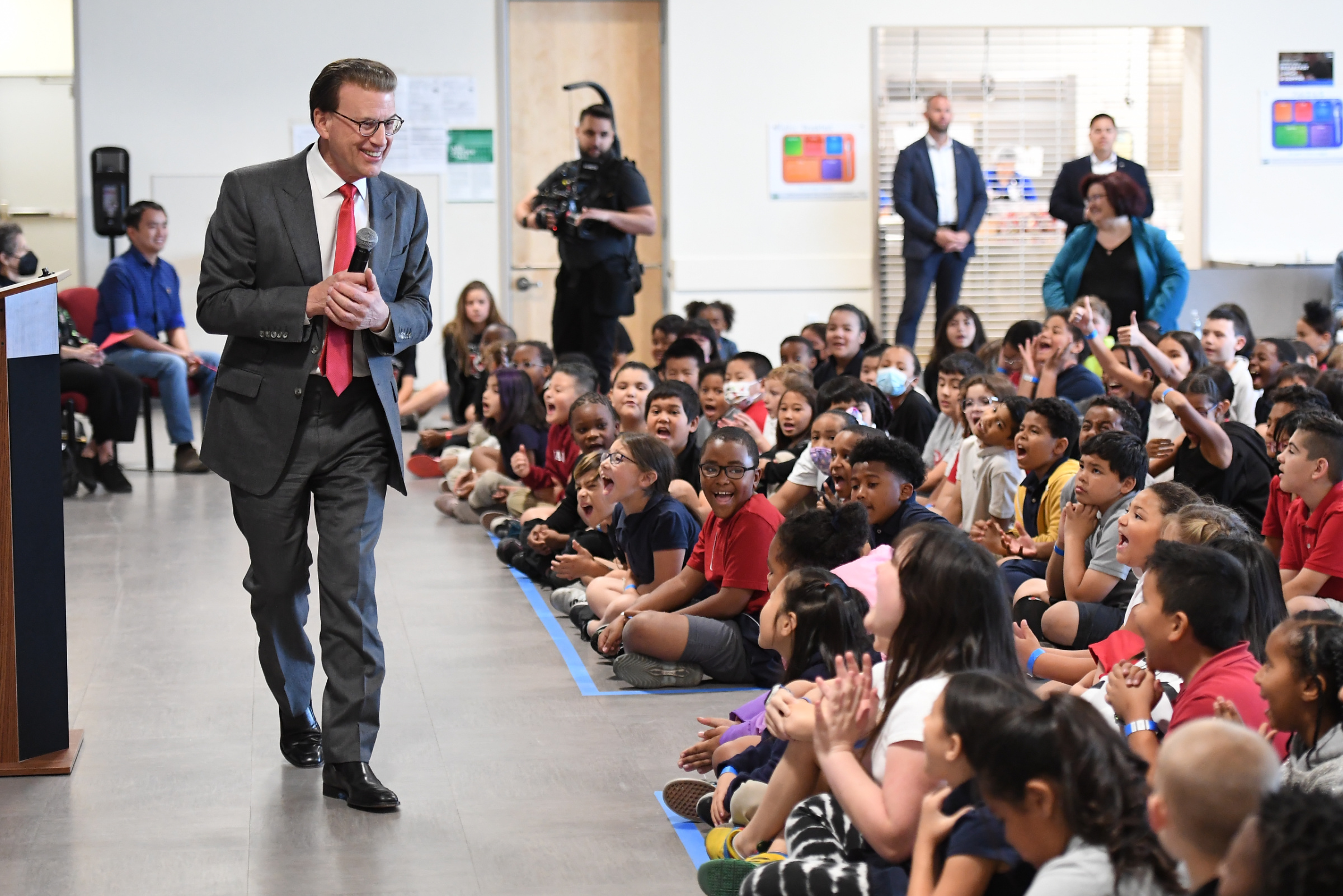 Dr. Beverly S. Mathis Elementary School | Las Vegas, NV | May 03, 2022Lowell Milken, founder of the Milken Educator Awards, tells the assembly that teachers have the most important job in our society: preparing young people for bright futures. More than 35 years ago, he created the Milken Educator Awards to recognize outstanding teachers and principals. In fact, in 2000, Dr. Beverly Mathis, the school's namesake, received the Milken Educator Award herself! This year, another outstanding educator is right here at Mathis Elementary—and that person is about to receive this important national honor.