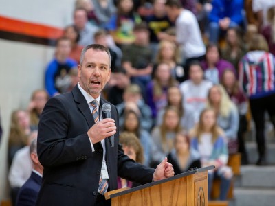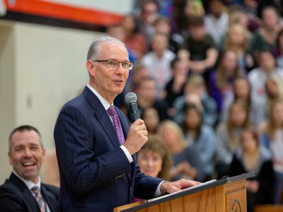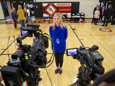 Good morning, Sioux Falls! Washington High School is welcoming South Dakota Secretary of Education Ben Jones for a conversation about civics education. But is there another reason for the schoolwide event? When Dr. Jane Foley, senior vice president of the Milken Educator Awards, names psychology teacher Alison Ter Horst the state's 2019-20 Milken Educator, the whole assembly is in shock. Welcome to the family!