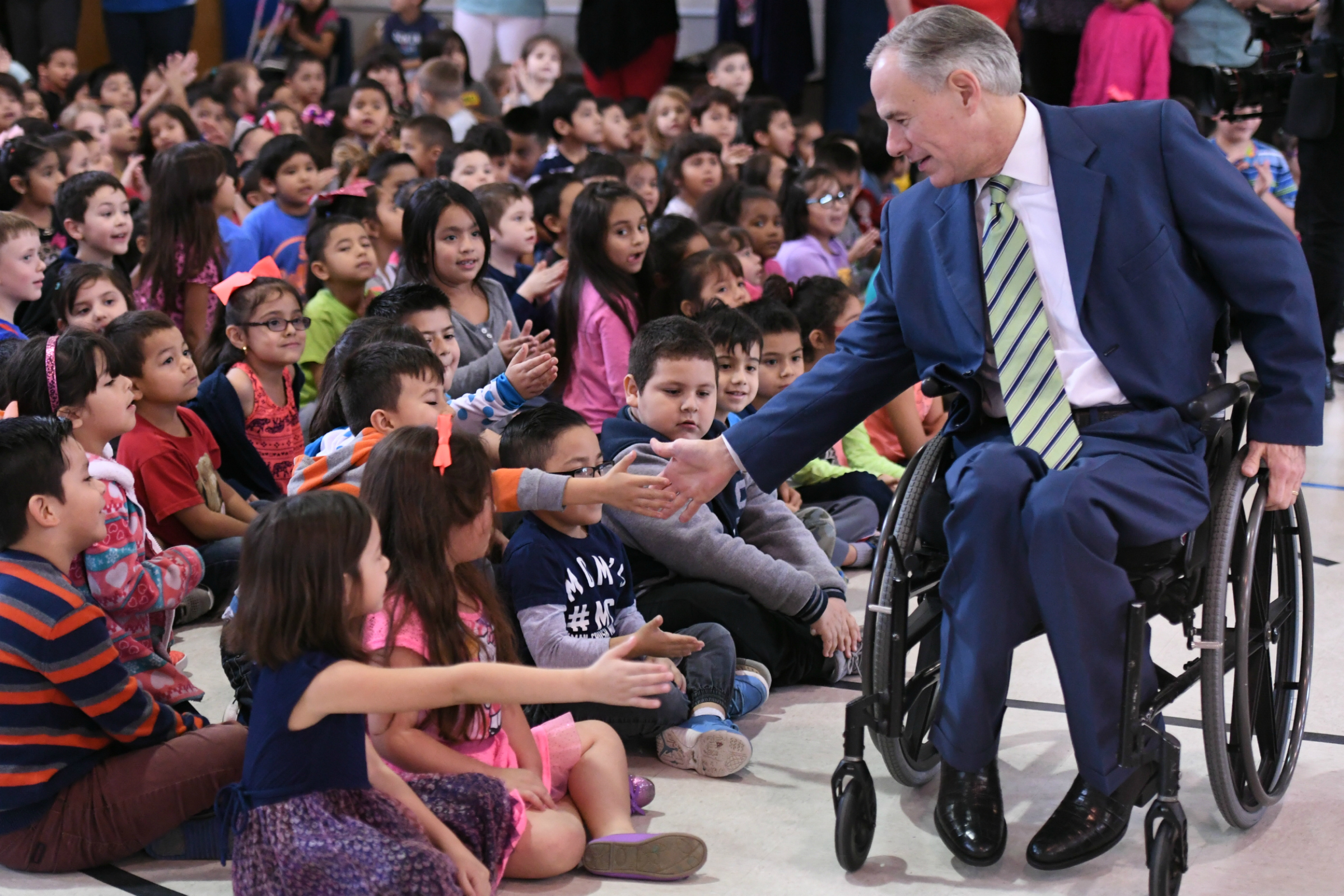 Barrera Veterans Elementary School | Von Ormy, TX | Feb 07, 2017Barrera Elementary students are excited to meet Texas Governor Greg Abbott as they wait for the all-school gathering to begin. The rural school serves a predominantly Latino high-poverty population.