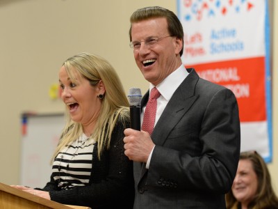 Dodge Literacy Magnet Elementary School | Wichita, KS | Feb 03, 2015Ten veteran Kansas Milken Educators join Lowell Milken in Wichita to add a “welcome to the family” message to Amy Stanislowski’s career-changing surprise.