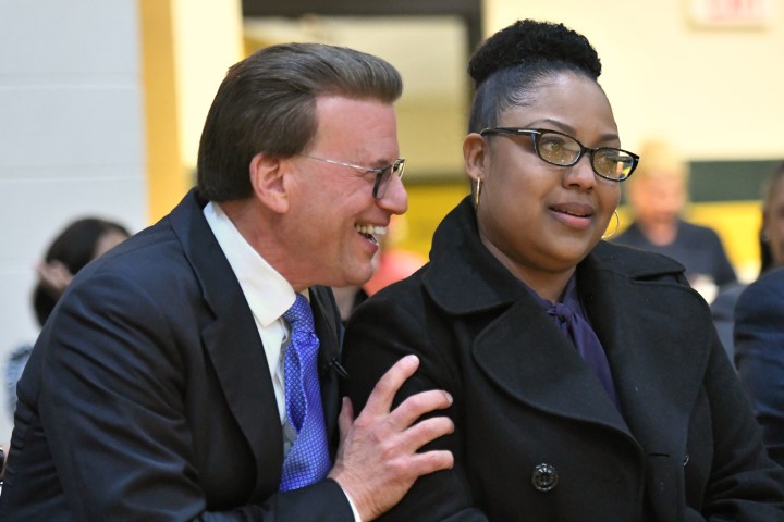 Edgar Martin Middle School | Lafayette, LA | Dec 07, 2017Milken Family Foundation Chairman and Co-Founder Lowell Milken reassures Angela Boxie that it's true—she is joining Louisiana's Milken Educator family, and this entire assembly was convened in her honor.