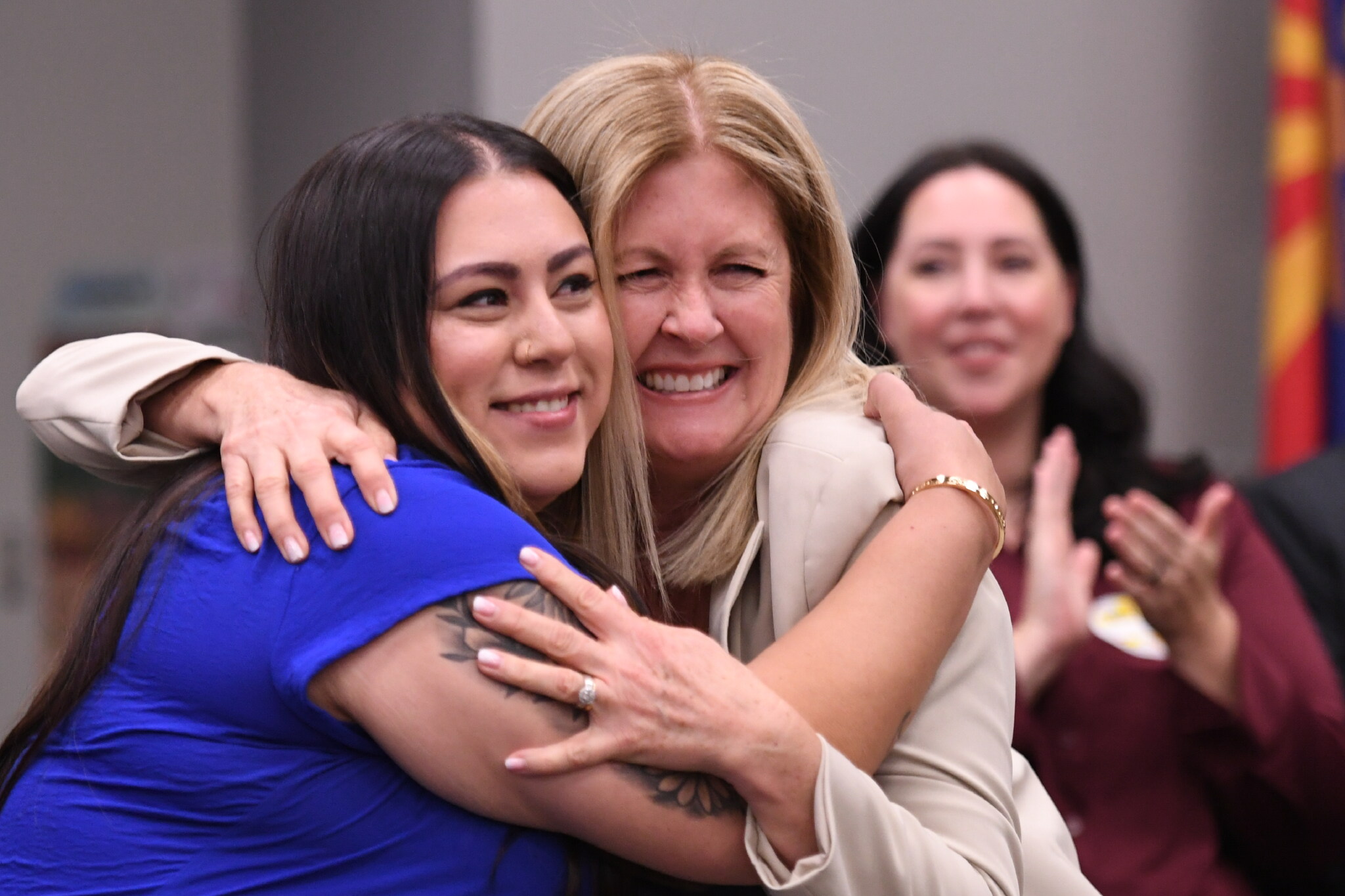 Westwood Elementary School | Phoenix, AZ | Jan 15, 2026Angelica Garcia is celebrated with a hug from National Institute for Excellence in Teaching West Regional Director Pilar Holtrop.