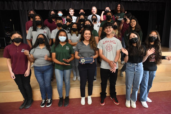 Los Alisos S.T.E.M. Magnet Middle School | Norwalk, CA | May 10, 2022Students in Angelica Gunderson's Essential Engineering class congratulate their teacher on her Milken Educator Award.