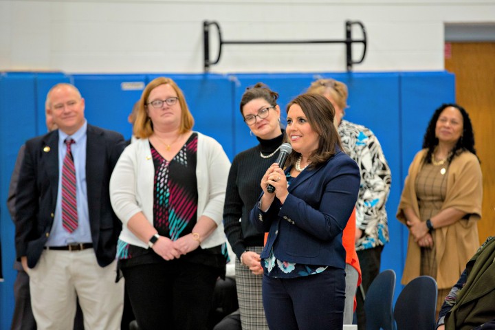 Peaks Mill Elementary | Frankfort, KY | Feb 11, 2019"The Milken Award completely changed my life," says veteran Milken Educator Brooke Powers (KY '17) as fellow Award winners look on. "It provided me with the resources to make a difference."
